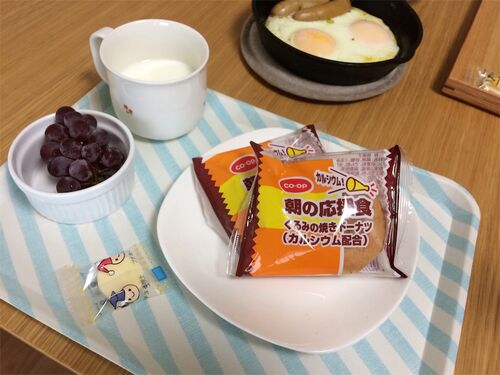我が家の朝ごはんは、だいたいパターン化されています。 炭水化物は 前日の残りのごはん ぶどうパン 卵料理は ひき肉入りオムレツ 目玉焼きウインナー +前日の残りの汁物(だいたい味噌汁かコンソメスープか中華スープ) +果物 +ヨーグルト +牛乳 だいたい…